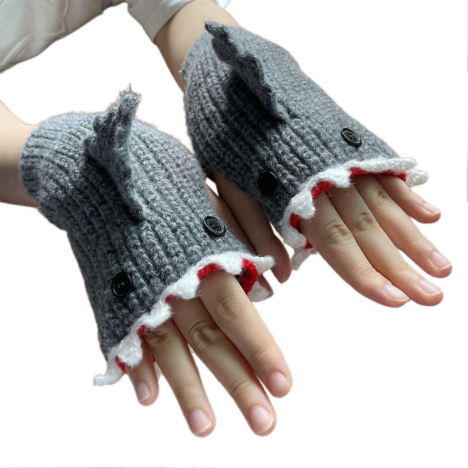Knitted Warm Half Finger Fingerless Gloves Quick Drying Adorable Sharks Design for Students