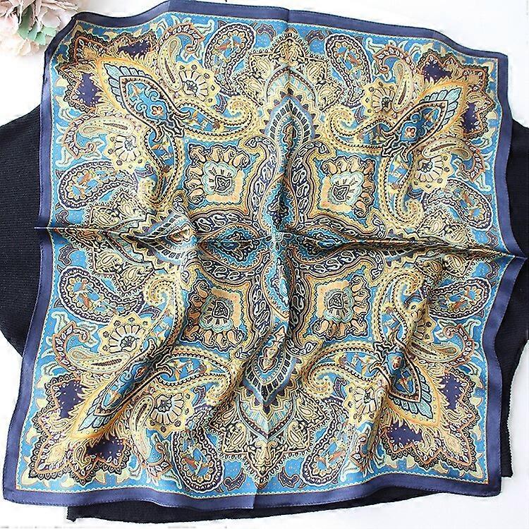 100% Silk Scarf Women Vintage Blue Paisley Kerchief Small Square Bandana 53*53cm