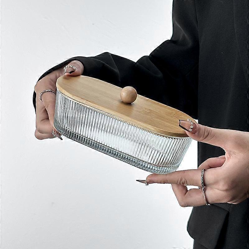 1pc Glass Serving Plate with Bamboo Wood Lid Oats Yogurts Snack Container Fruit Salad Bowl Home Party Food Serving Dish