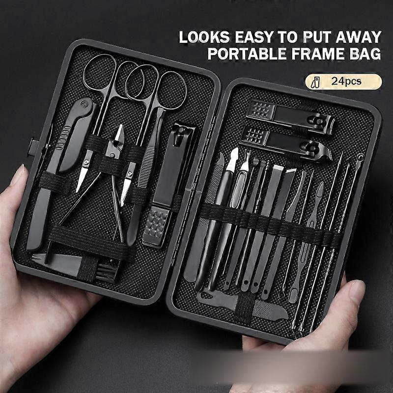 24Pcs Nail Clipper Set Stainless Steel Zipper Bag Manicure Beauty Kit Dead Skin Nail Scissor Nails File Pedicure Tool