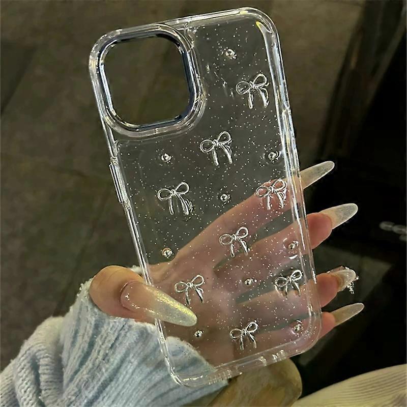 Ins Glitter 3d Silver Bow Bead Case For Samsung Galaxy S25Ultra S25 S24 Ultra S23 S22 Plus S24 Fe A14 A15 A35 A55 A34 Epoxy Clea