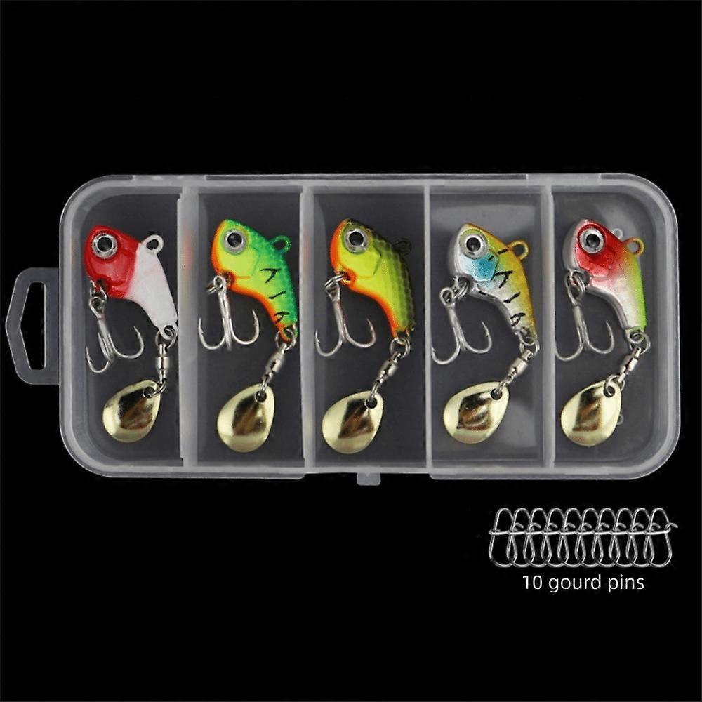 5 pi��ces rotatif paillettes artificielles appats de p��che Spinners Vibration appats de p��che Kit color�� manivelle crochet p��che leurres croc
