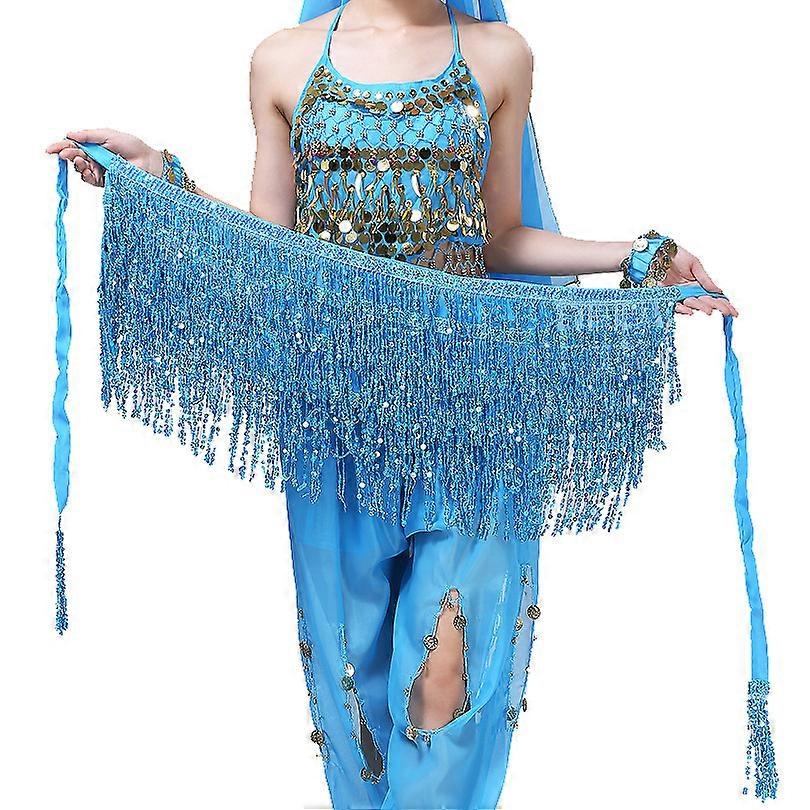 ��charpe de hanche de danse du ventre Sexy pour femmes, avec paillettes �� 4 couches, frange superpos��e, jupe brillante, boh��me en mousseline