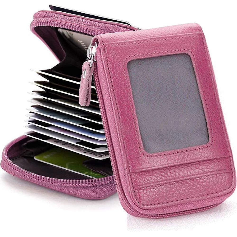 Women Leather Credit Card Holder RFID-Blocking Zip Pocket Wallet with ID Window