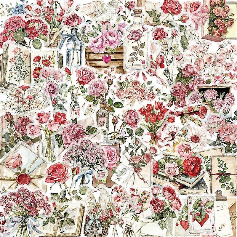 50PCS Vintage Rose Letter PET Sticky Sticker Aesthetic Korean Stationery DIY Decoration Scrapbooking School Supplies for Kids