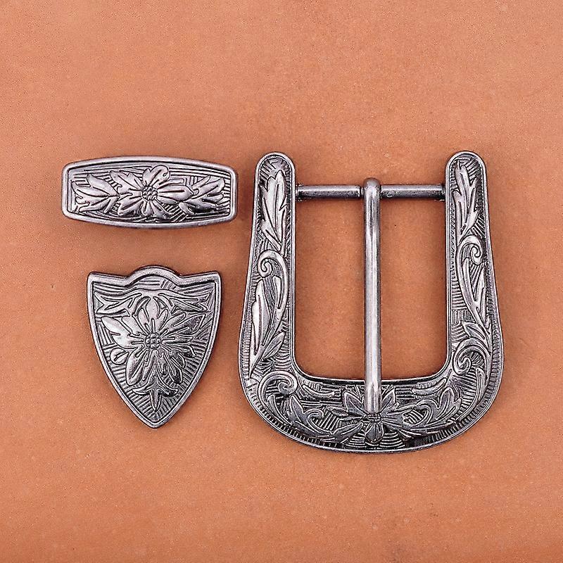 Large Men's Vintage Silver Floral Western Cowboy Belt Buckle Set Fits 35mm Strap