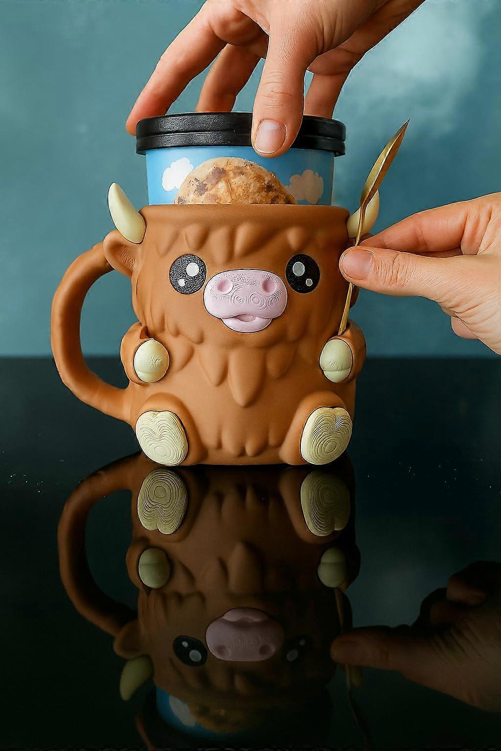 Ice Cream Pint Holder with Cute Highland Cow Design, Comfort Grip and EcoFriendly Style