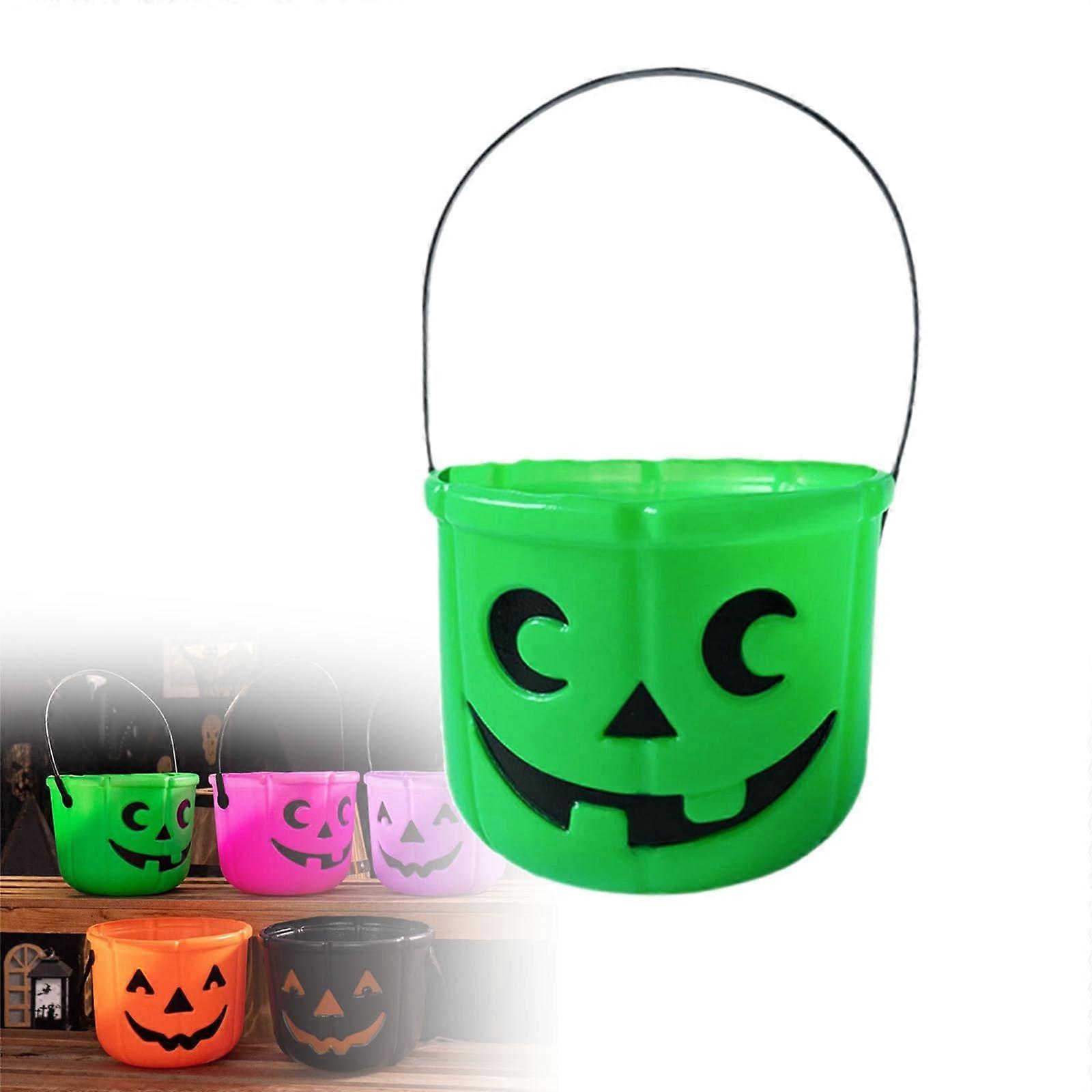 Halloween Candy Bucket Green Pumpkin Trick or Pail Durable Lightweight for Party Use