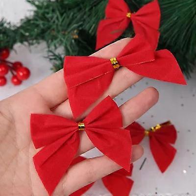 Christmas Decorations Flocked Mini Gold and Silver Christmas Bow Christmas Tree Wreath Pendant24pcs