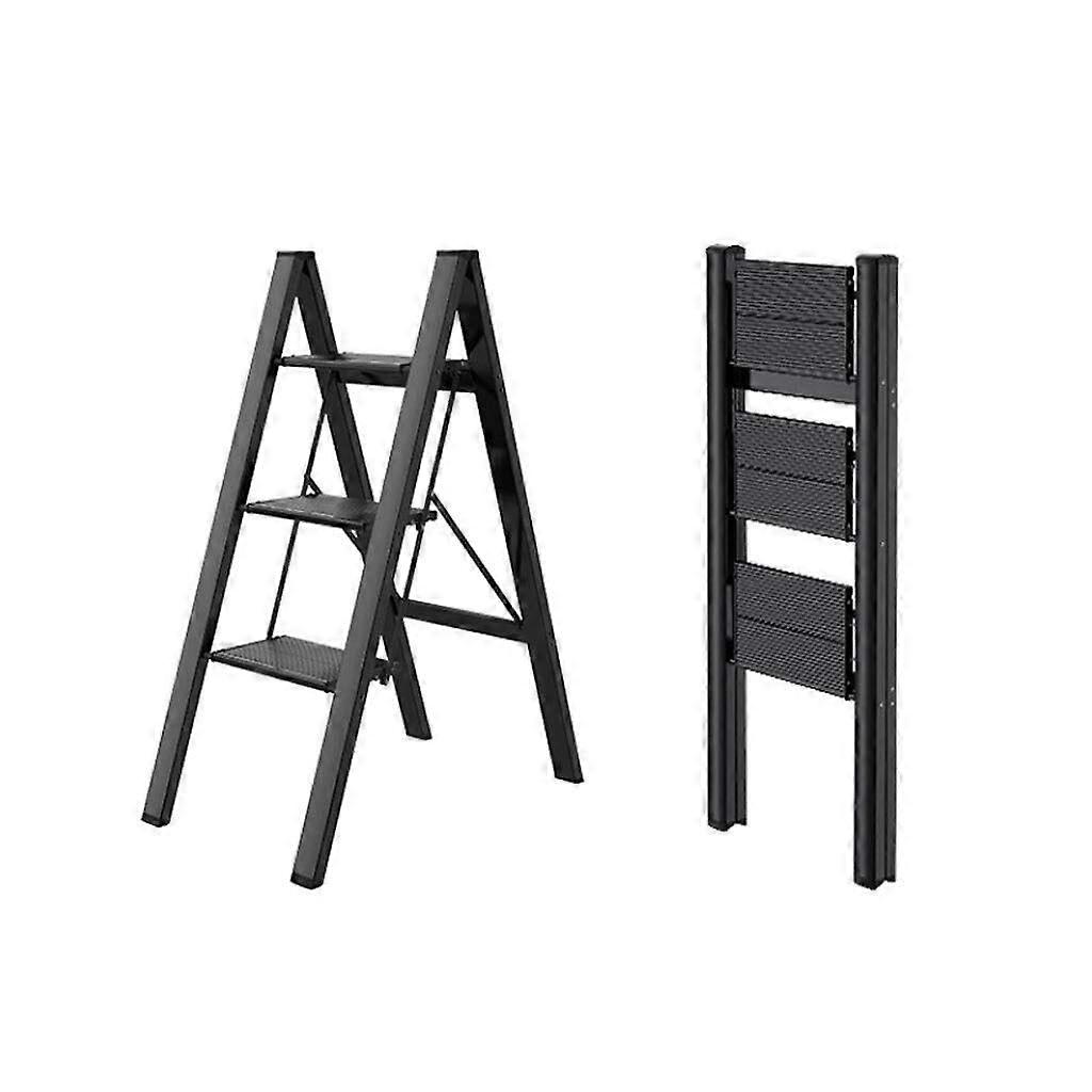 Aluminum Alloy 3/4Step Telescoping Ladder, Folding Step Ladder 150kg Capacity with NonSlip Wide Pedals for Indoor and Outdoor Use, Black 82cm