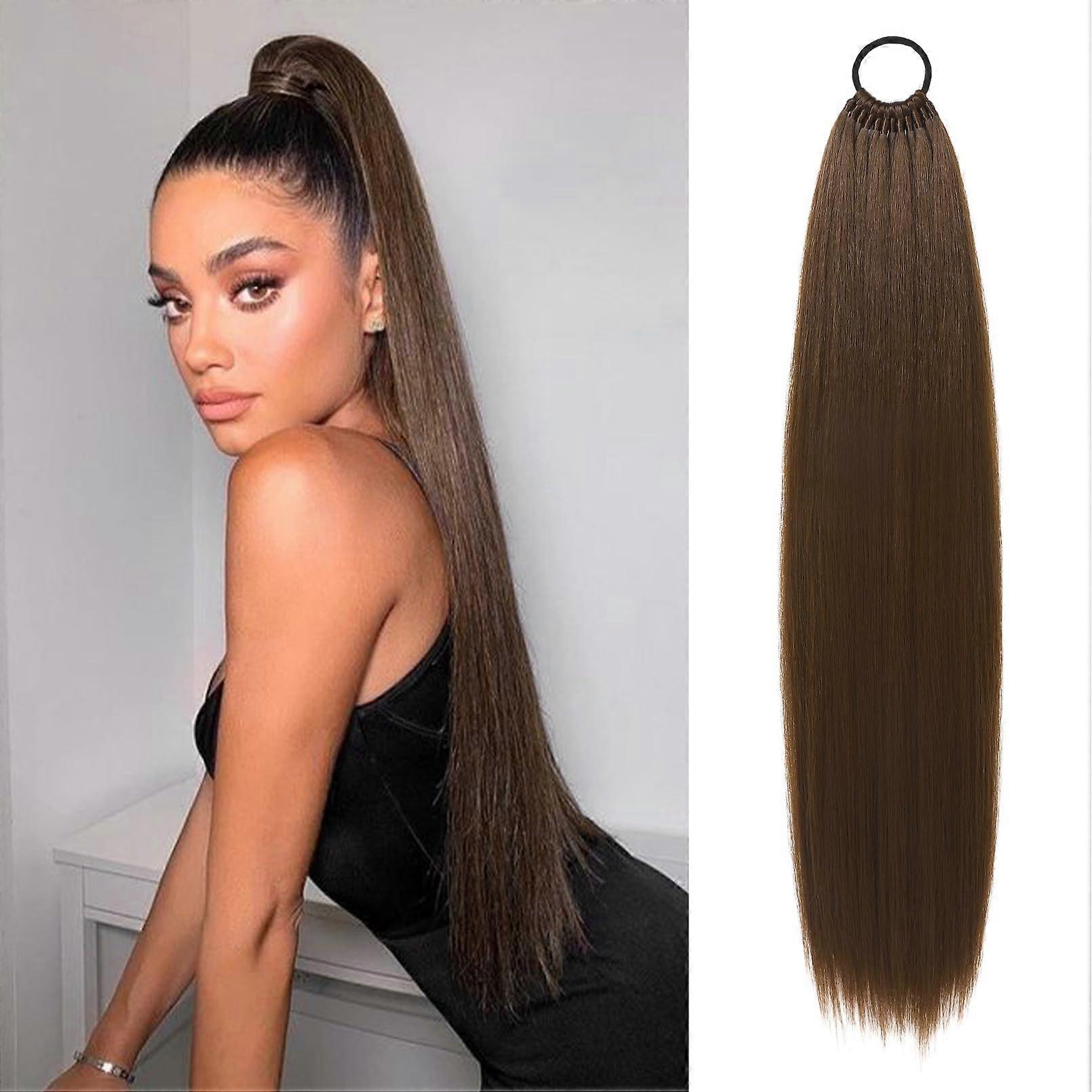 28 Inch Straight Synthetic Ponytail Extension with Silky Natural Texture, HeatResistant, Chocolate Brown