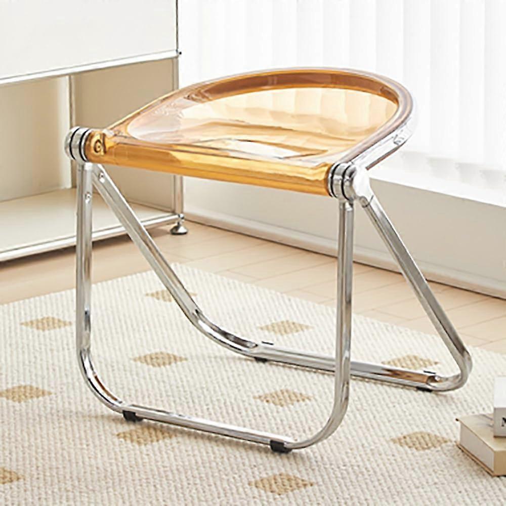 Modern Acrylic Folding Chair – Functional, Stylish, and SpaceSaving Contemporary Design: Enhance your dining area, office, or study space with the clean lines and transparent look of this acrylic folding chair. Its sleek silhouette blends seamlessly with modern interiors, adding a light and open feel to any room. Ergonomic Comfort: Designed with user comfort in mind, the recessed seat surface contours to wrap naturally around the hips, providing support for extended periods of sitting during meals, work, or study sessions. Durable and Easy to Maintain: Crafted from acrylic, this chair resists everyday scratches and can be wiped clean within seconds. The sturdy metal frame features rounded corners, reducing the risk of bumps or injury for all family members. SpaceEfficient Design: Fold and unfold in seconds, ideal for quick setup or storage. Its compact folding profile allows it to fit neatly into small corners, closets, or under beds. for apartments, dorms, or homes where space is at a . Practical Applications: 1. Dining – Use as an elegant, modern seating option for meals, especially in small kitchens or dining spaces. 2. Home Office – Quick setup for a workfromhome station and easy storage when not in use. 3. Events or Gatherings – Extra seating for guests that can be stored away effortlessly afterward. Specifications: Material: Acrylic seat with metal frame Design: Transparent, modern style Portability: Lightweight and foldable for easy transport Safety: Rounded frame corners to protect users Maintenance: Scratchresistant surface, quick to clean This acrylic folding chair combines style, comfort, and practicality, offering a versatile seating solution that fits seamlessly into any modern living space.