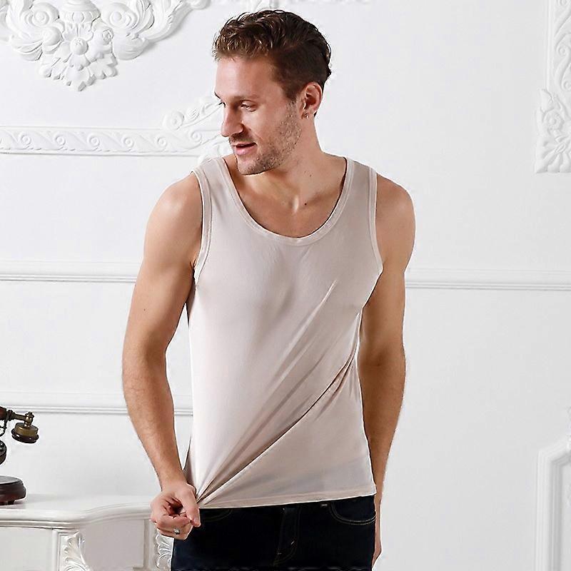Men 70% Pure Silk Tank Top Vest Sleeveless Knitted Leisure Crew Neck Soft White