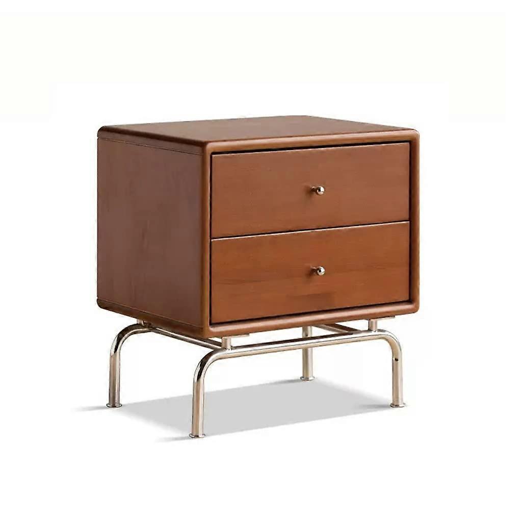 Retro Bedside Table with Double Drawers, Modern Wooden Nightstand for Bedroom and Living Room