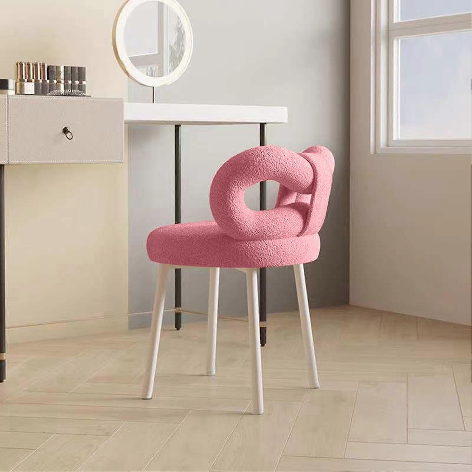 Vanity Stool with Bow Backrest, Plush Faux Fur Cushion, Small Bedroom Makeup Chair, Pink
