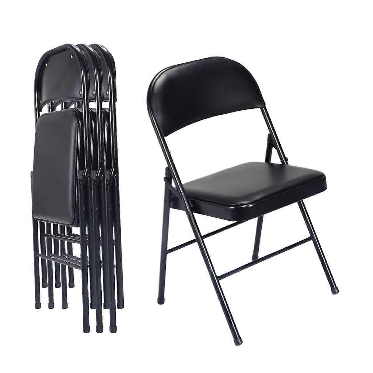 Folding Chairs with Padded Seats, Black Steel 4 Pack, Stackable Indoor Outdoor, Supports 330 lbs