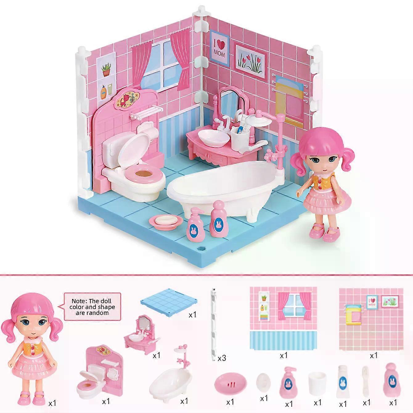 Maison de poup��e Miniature �� monter soi-m��me, simulation de chambre �� coucher, salle de bain, cuisine, meubles d'��tude, maison de jeu, jouet
