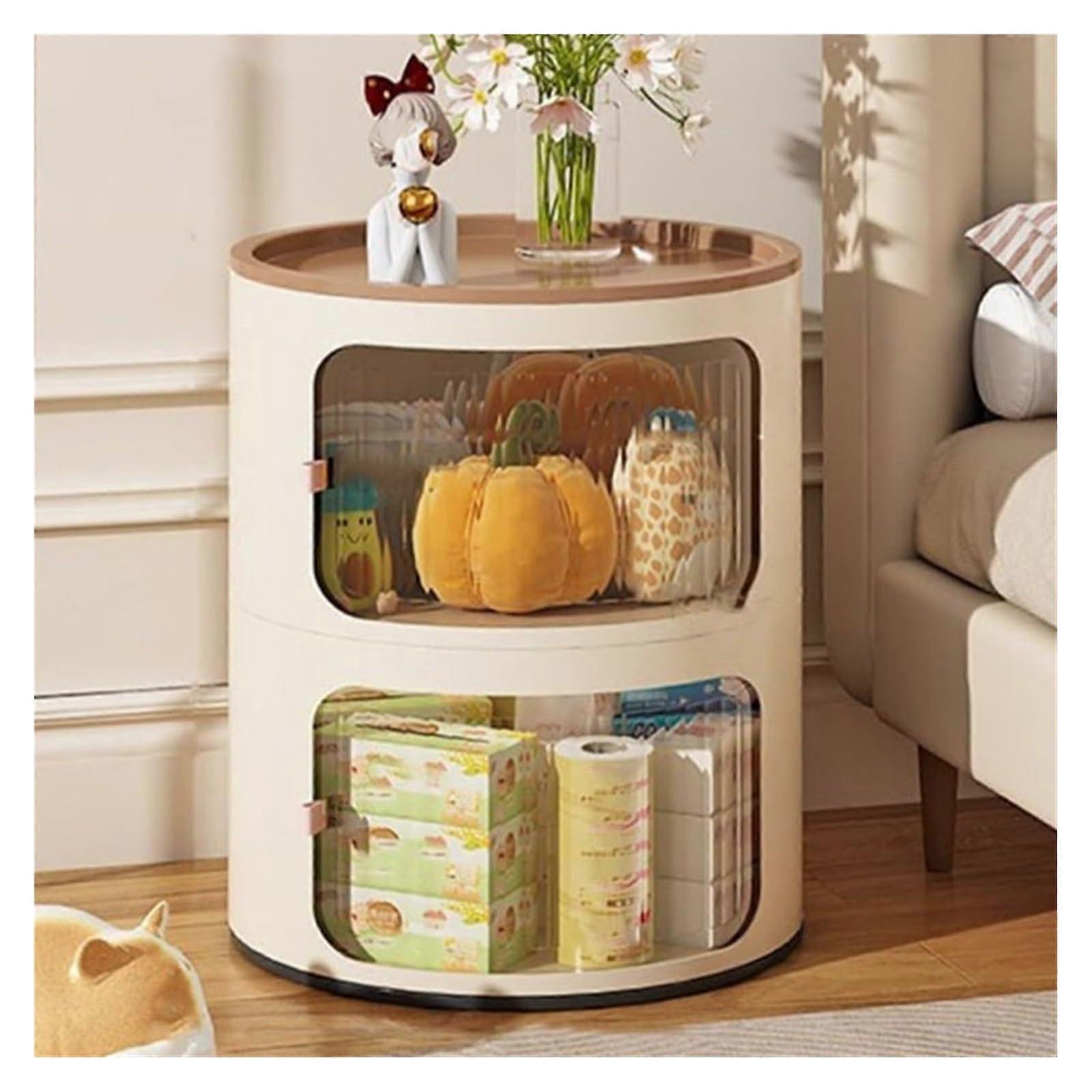 2/3/4 Tier Plastic Nightstand, Round Bedside Table with Transparent Sliding Doors, Modern Brown 32x40cm