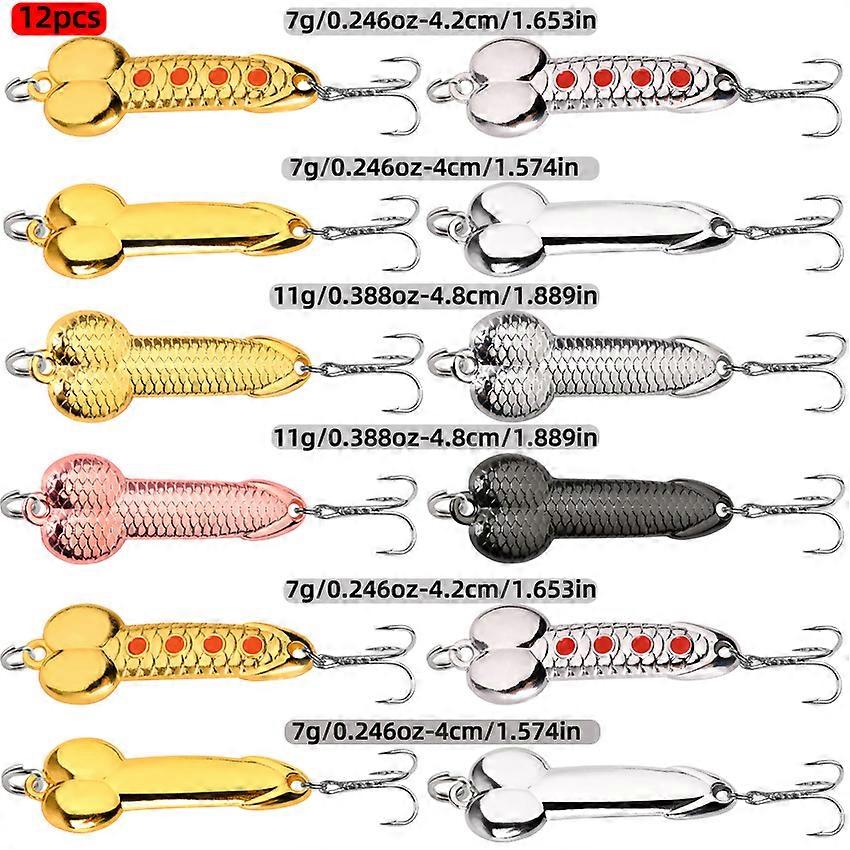 12 pi��ces cuill��re leurres de p��che ensemble m��tal bite p��nis forme appat manivelle crochet 5-20g m��tal paillettes VIB Jig Pesca leurres de