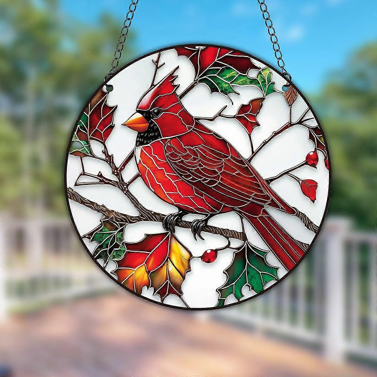 Red Cardinal Stained Glass Effect Acrylic Window Hanging Bird Ornament Gift for Mom Grandma Decor