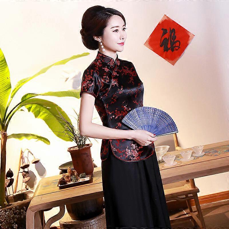 Chinese Traditional Shirt Women Summer Silk Satin Tops Lady Embroidery Blouse