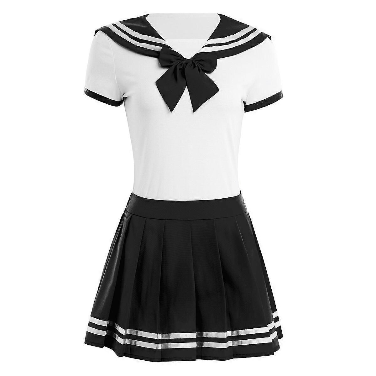 Women Schoolgirl Uniform Japanese Anime Costume Tie Top Shirt Pleated Skirt Set