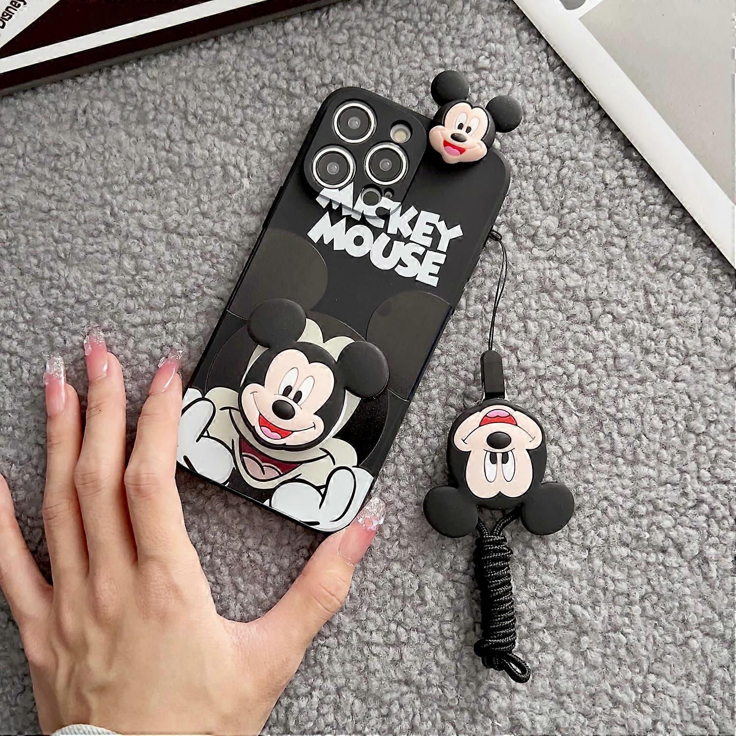 Minnie Mickey 3D Cartoon Doll Phone Case With Rope Lanyard Pendant For iPhone 17 17pro 16 Pro Max 15 Pro 14 Plus 13 12 11 Mini