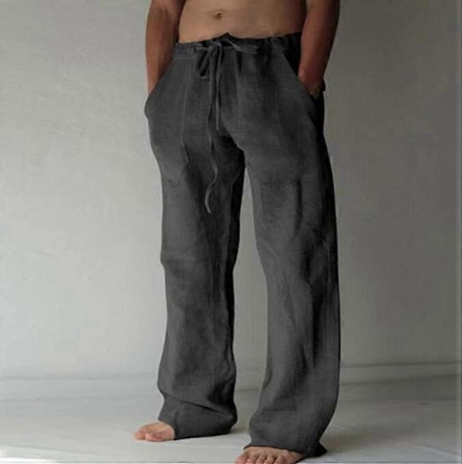 Men's Casual Cotton Linen Pants Drawstring Trousers Comfort Loose Wide Leg Pants