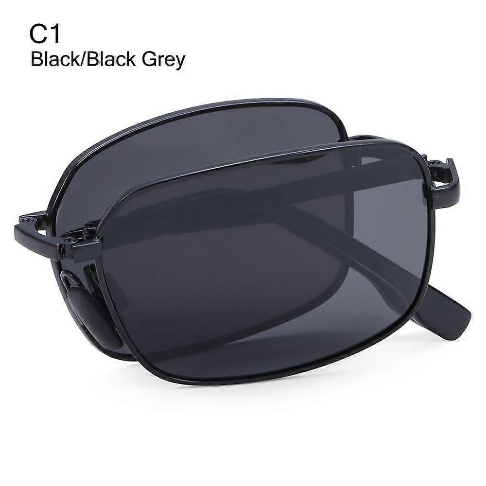 Portable Folding Polarized Sunglasses for Men, Square Metal Frame Photochromic Sunglasses Driving Glasses Night Vision Eyewear