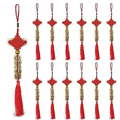 12pcs Chinese Lucky Coins Feng Shui Knot Tassel Set for Wealth Prosperity and Year Decor