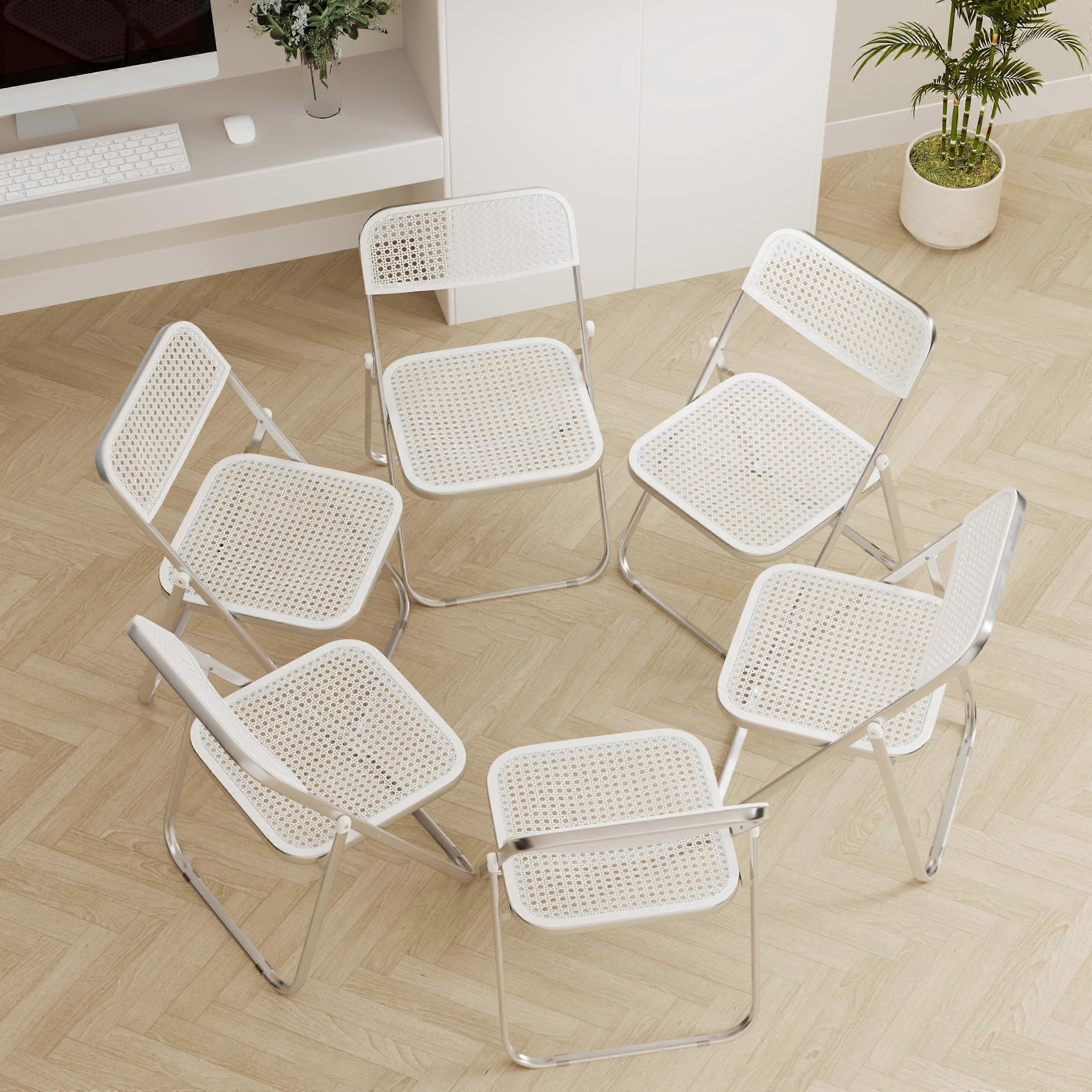 6 Pack White Plastic Folding Chairs 300lbs Capacity Indoor Outdoor Stackable Steel Frame
