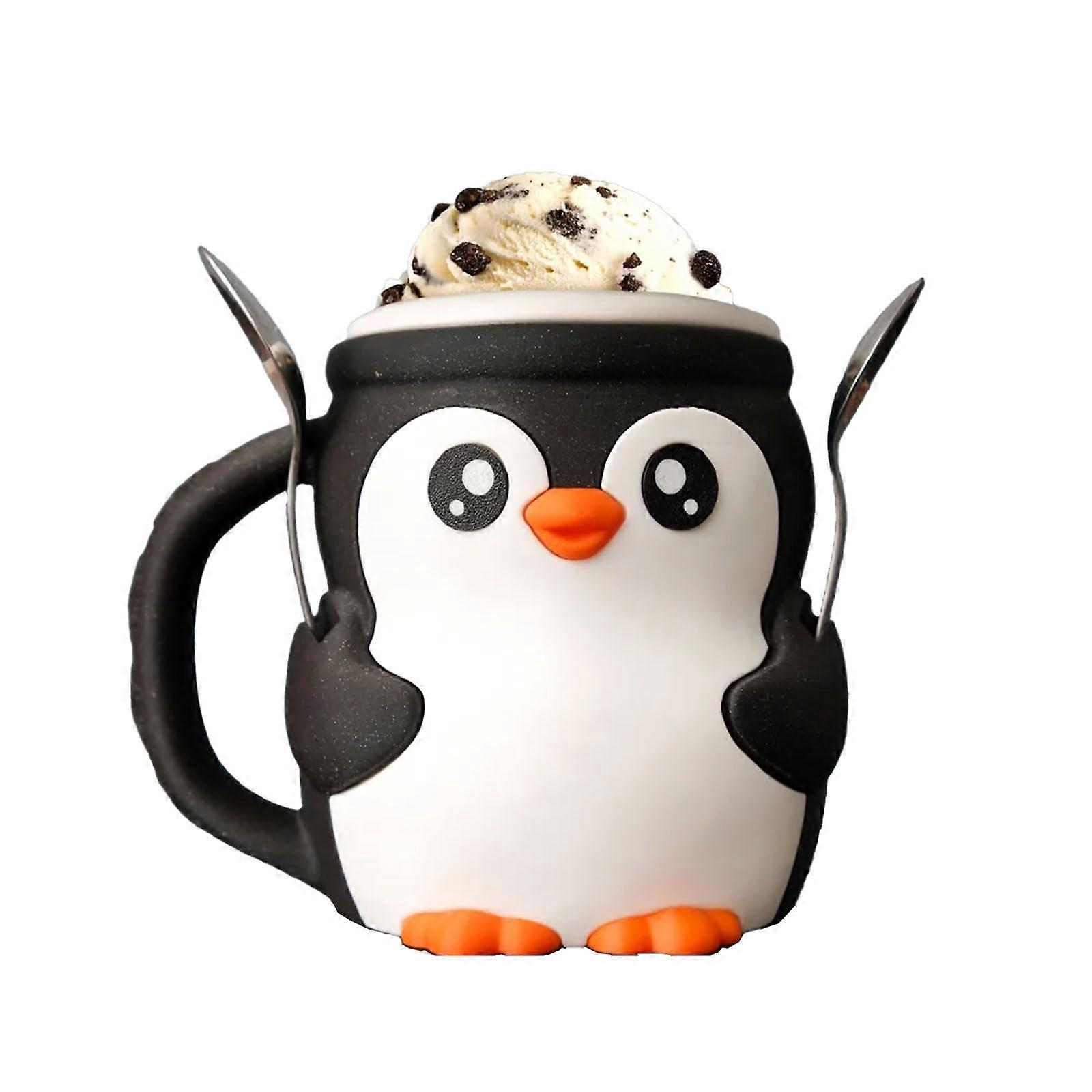 Highland Cow Ice Cream Pint Holder with Handle, Insulated Reusable Container with Spoon Storage, Black