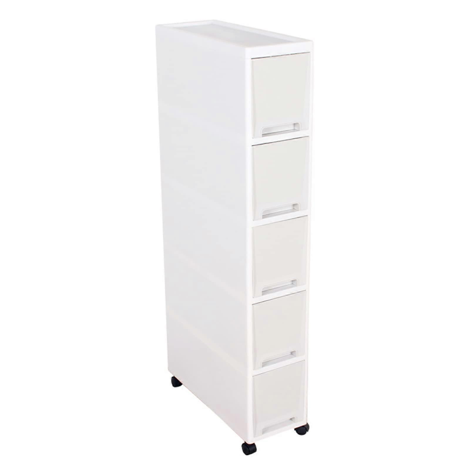 Narrow Slim Rolling Storage Cabinet with 5 Deep Drawers for Kitchen Bathroom Laundry Room