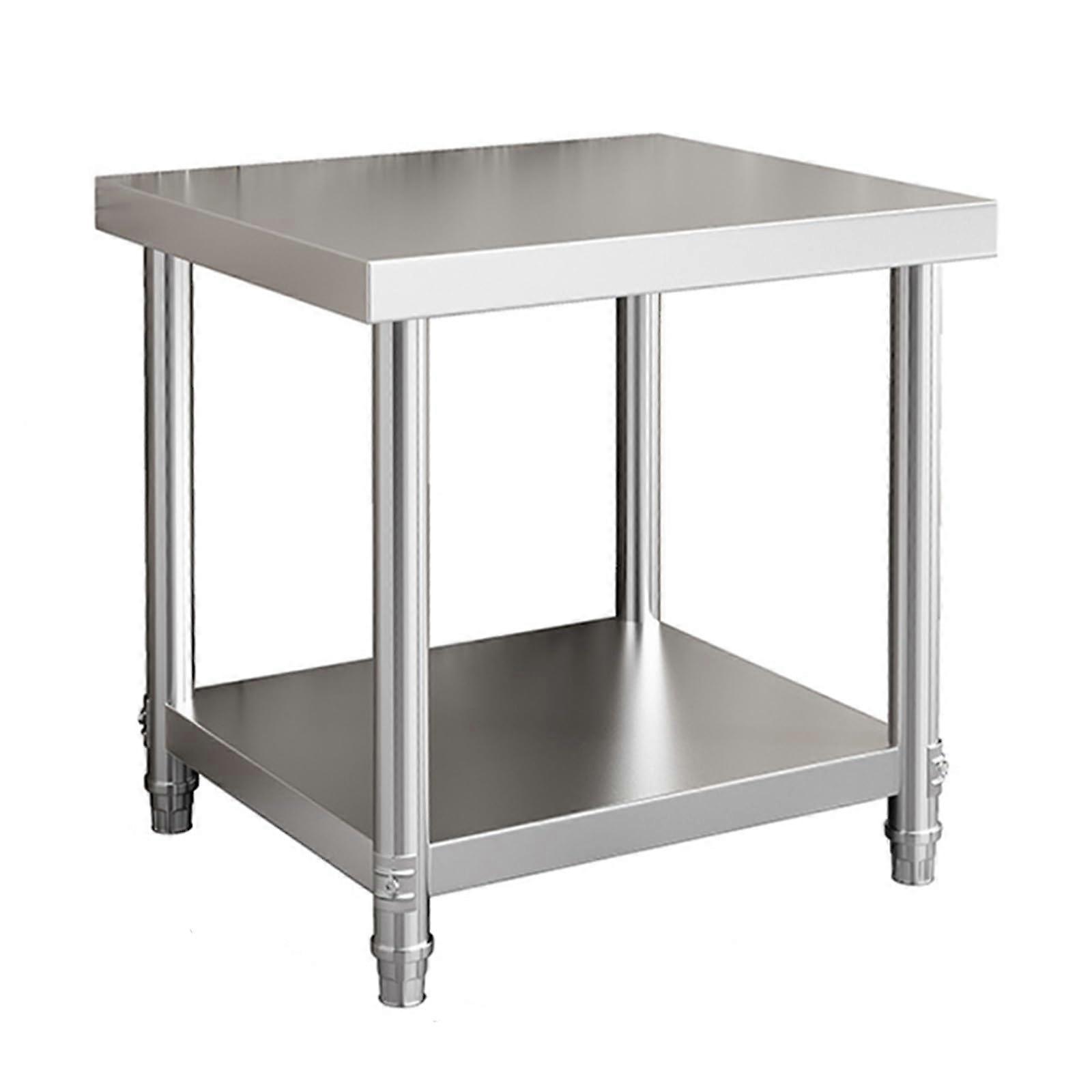 Stainless Steel Work Table with Adjustable Shelf, HeavyDuty Commercial Double Deck Prep Table 80x80x60cm