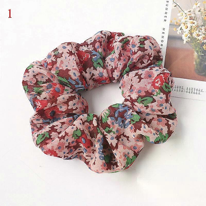 Women Sweet Floral Print Scrunchies Ponytail Holder Bands Elastic Hair Ring Ties