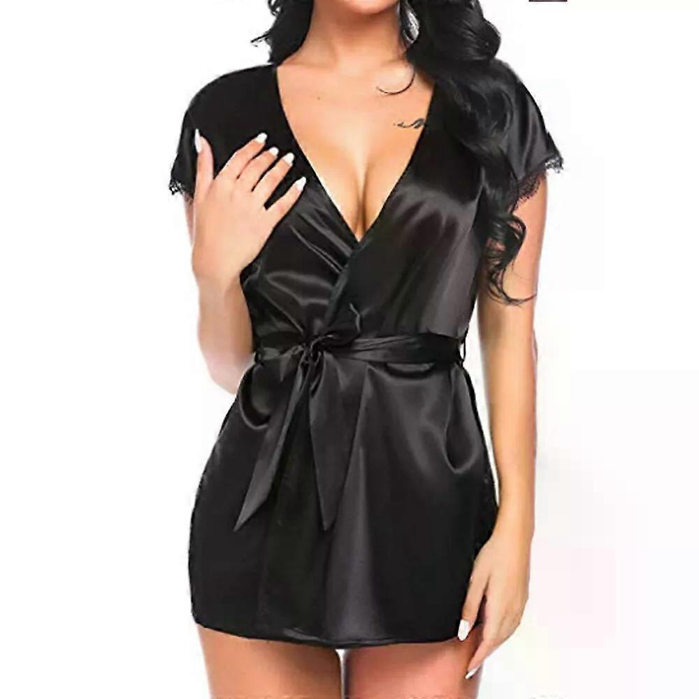 Womens Short Silk Robe Lace Trimmed Sexy Lingerie Comfy Sleepwear Babydoll Teddy