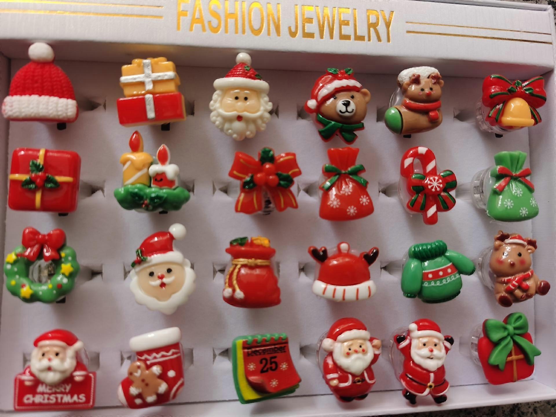 1-20pcs Creative Christmas Theme Resin Glowing Ring Toys Santa Claus Christmas Tree LED Blue/Flashing Ring Kids Gift Party Decor