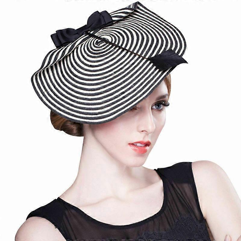 Women Stripe Bow Arrow Feather Straw Saucer Fascinator Cocktail Wedding Hat A003