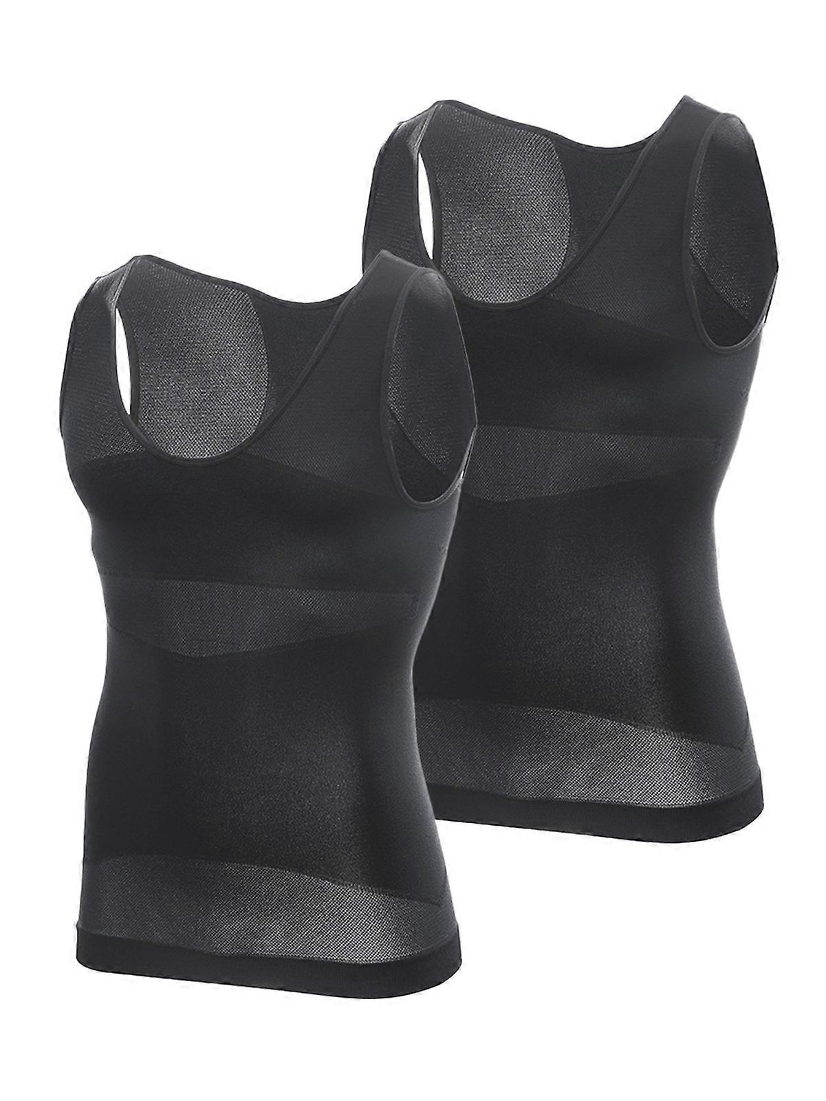 2Pc Men's Compression Sleeveless Shirt Tank Top Slimming Body Shaping Underwear
