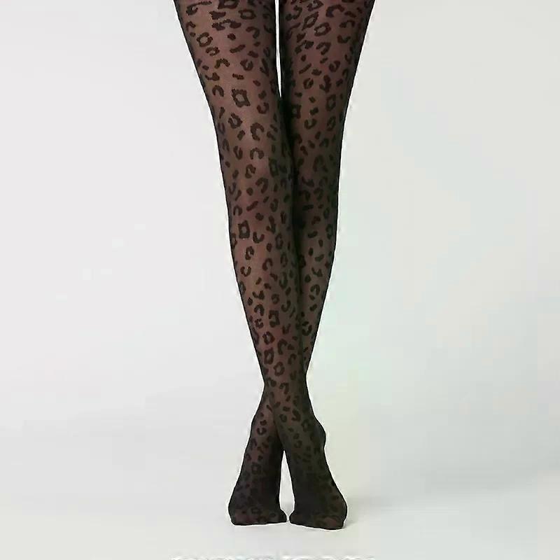 Talenza Leopard Print Sexy Pantyhose Women's Retro Print Pantyhose Black Super Stretch Thin Bottoming Tights Y2k Slim Stockings