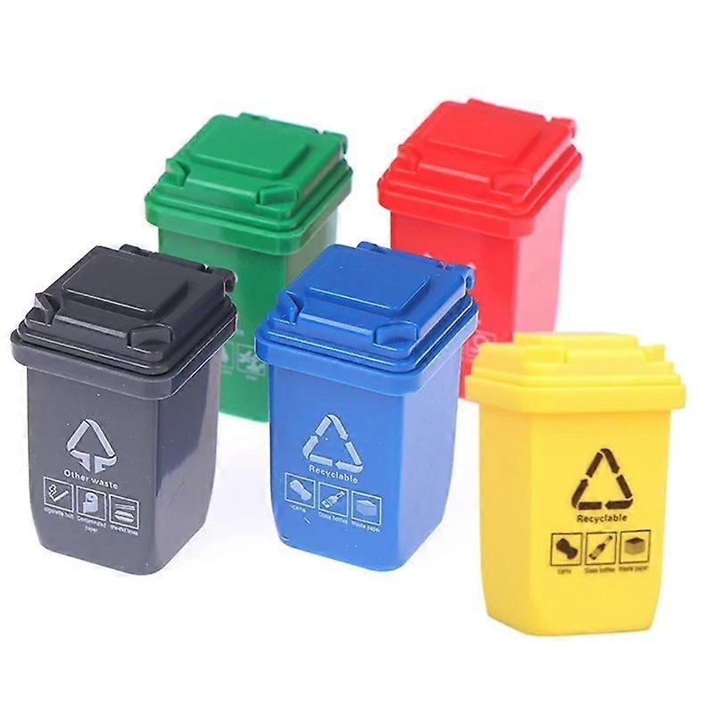 1/12 Mini poubelle jouets, 5 pi��ces poubelles miniatures avec couvercles ouverts petit mod��le de poubelle pour enfants accessoire de maison