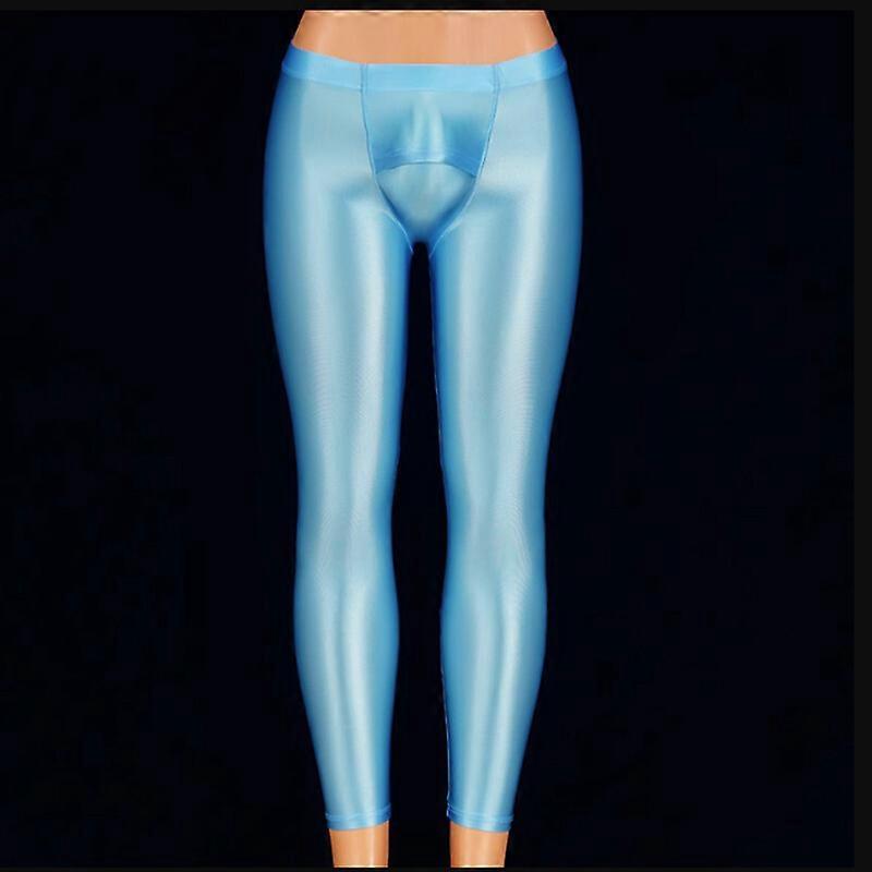 Men Sexy Shiny Glossy Tights Pants Running Skinny Workout Yoga Fitness Trousers