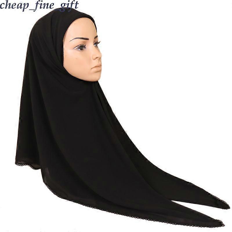 Women Bubble Chiffon Lace Square Scarf Muslim Plain Scarves Wraps Shawls Hijab