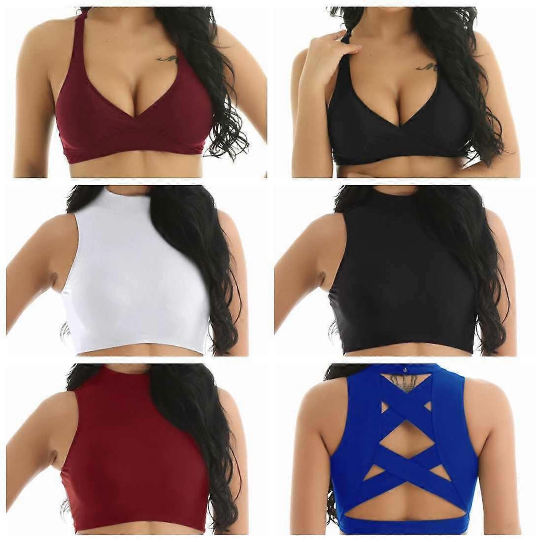 Women Turtleneck Yoga Sports Bra Fitness Workout T-shirt Short Crop Top Gym Cami