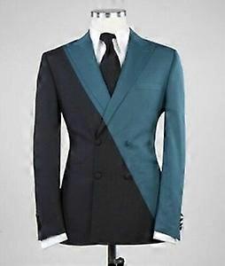 Patchwork Wedding Men's Suits Double Breasted Jacket Peak Lapel Business Tuxedo