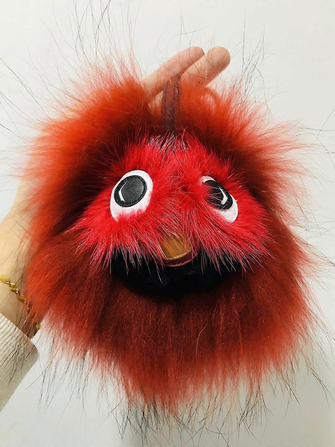 Real Fox Fur Monster Bag Charm Pom Pom Fur Ball Car Phone Bag Keychain Pendant
