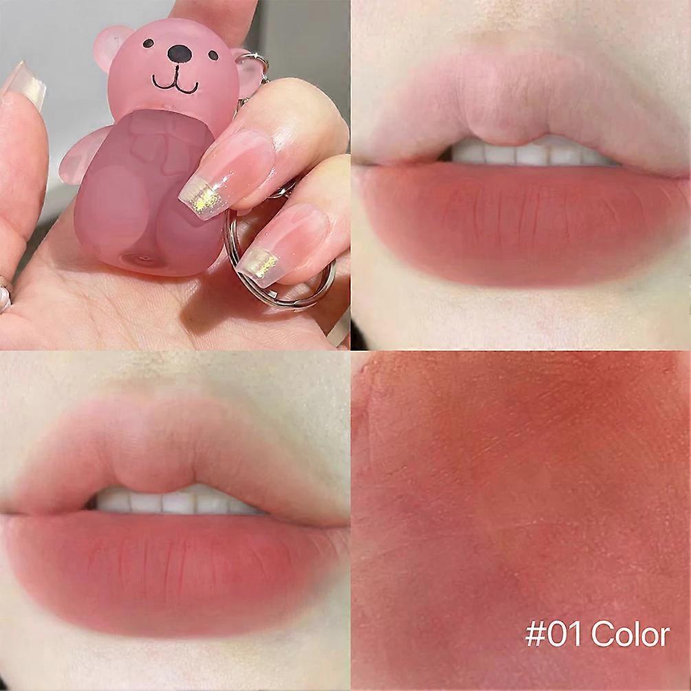 Cute Bear Keychain Lip Mud Matte Velvet Mousse Grey Pink Lipstick Waterproof Long Lasting Non-Stick Cup LipGloss Korean Cosmetic