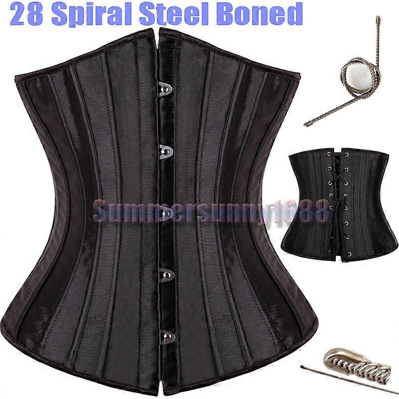 Black 28 steel bones boned Waist Training Underbust lace up corset Top Shaper