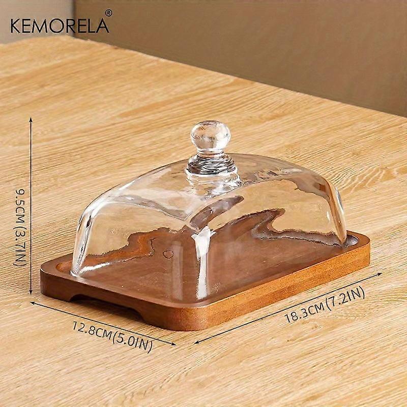Vintage Butter Dish with Glass Lid - Elegant rectangular dinner plate with clear dome lid and black knob, decorative kitchen