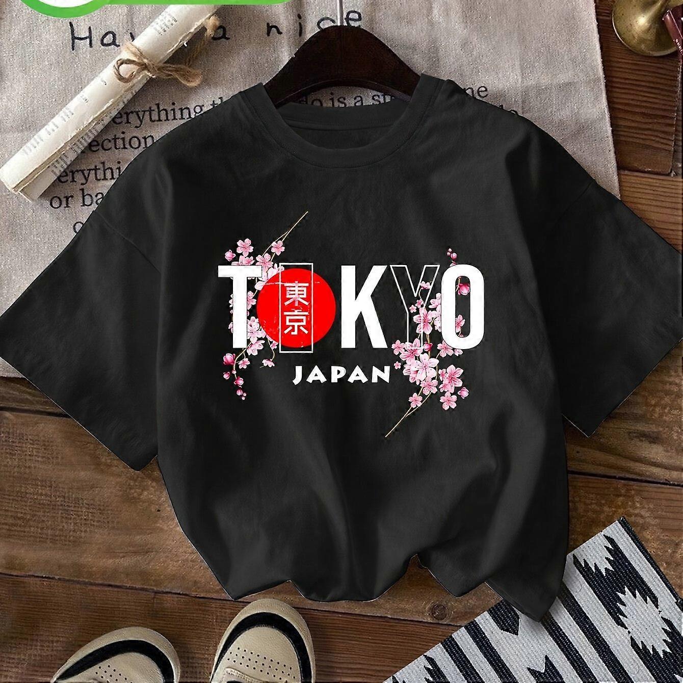 Tokyo Sakura Print T-Shirt, Spring/Summer 100% Cotton Crew Neck Short Sleeve Casual Top T-Shirt